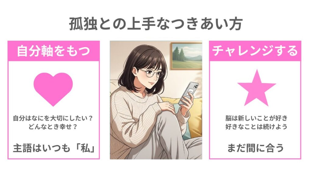 自分の価値観に従った選択を重ねることで、孤独に振り回されにくくなっていきます。