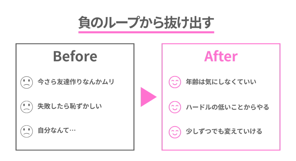 結果として、新しい関係を避け、今あるコミュニティに留まろうとすることで、かえって孤独感が強まってしまうのです。