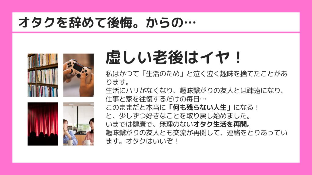 中年になっても、オタクであっても、あなたの人生はまだ途中です。