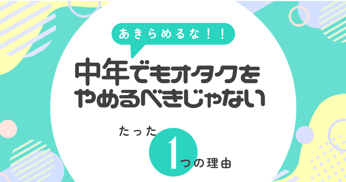 冒頭に戻りますが、もう中年だしオタクはやめるべき?と悩んでいる方。